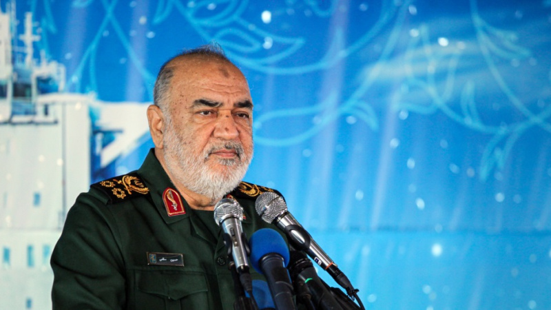 Gotinên Serdar Selamî Fermandê Giştî yê Sipahê Pasdaran di merasima nimandina papora hilgirê xwefirana Îranê de.