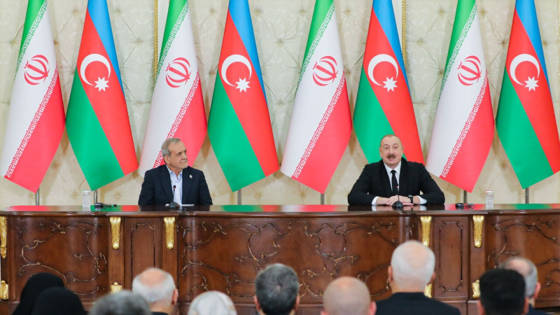 Mesûd Pizişkiyan îro di civîneke çapemeniyê ya hevpar de ligel Îlham Eliyev got: Em dikarin di hemû waran de hevkariyê bikin.Wî got ku her du welat, wekî welatên cîran, her tim piştgiriyê didin hev. Em li vê navçê ji aliyê ol, bawerî û siyasî ve gelek xalên me yên hevpar hene û em hewl didin ku ser bingeha van xalên hevpar têkiliyên xwe berfireh bikin.