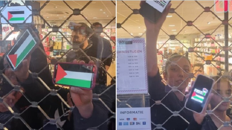 Karmendên firoşgeha Ay Sî Ay Parîs Îks`ê bi dannîa şiklê ala Filistînê ser mobaylên xwe, hevgirtina xwe tev gelê mezlûm ê Filistînê ragihandin ku vê yekê li şebekeyên civakî gellekî deng veda.