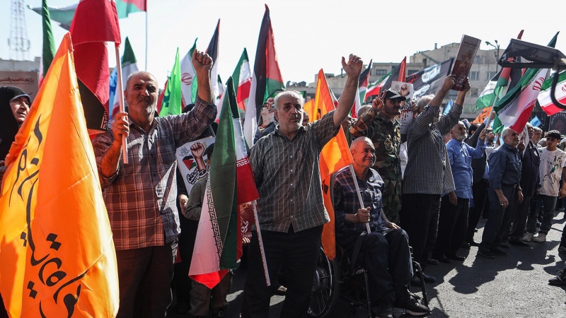 Hevdem digel duyemîn salvegera operasyona 'Bahoza Eqsayê', meşa bicoş a 'Beşareta Nesrê' (Mizgîniya Serkeftinê) ji bo piştevaniya ji gelê berxwedêr û qareman ê Filistînê duh piştî xwendina Nimêja Îniyê li seranserî Îrana Îslamî hat lidarxistin.